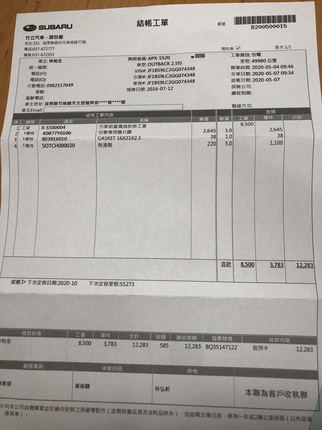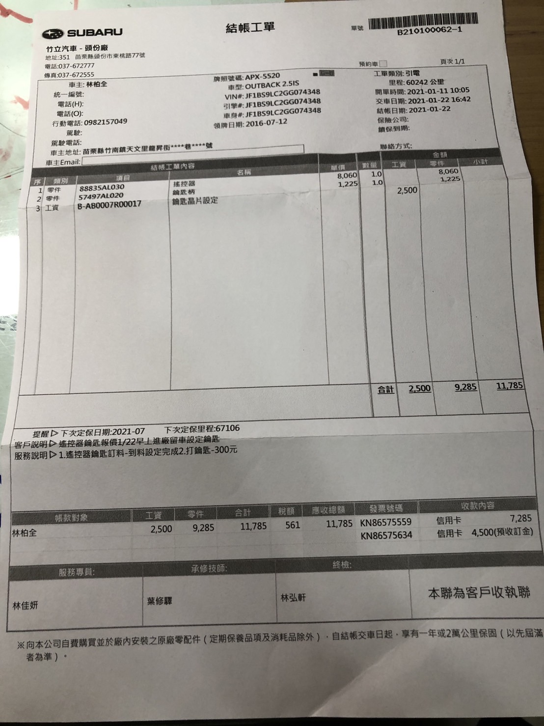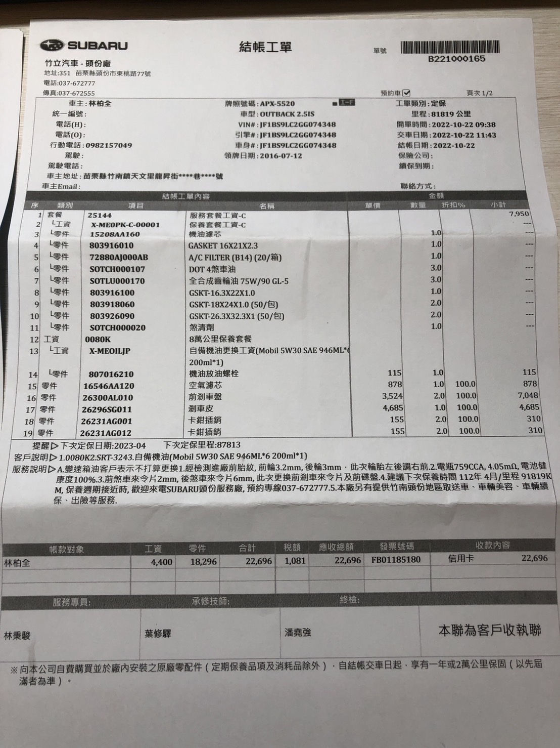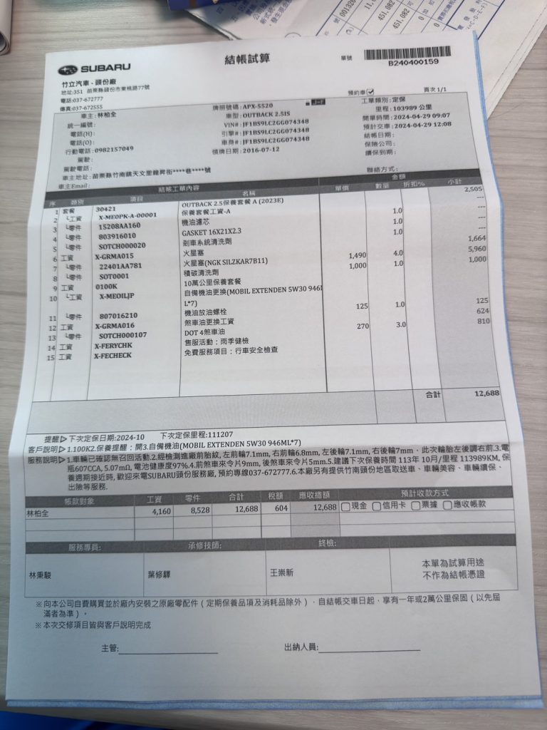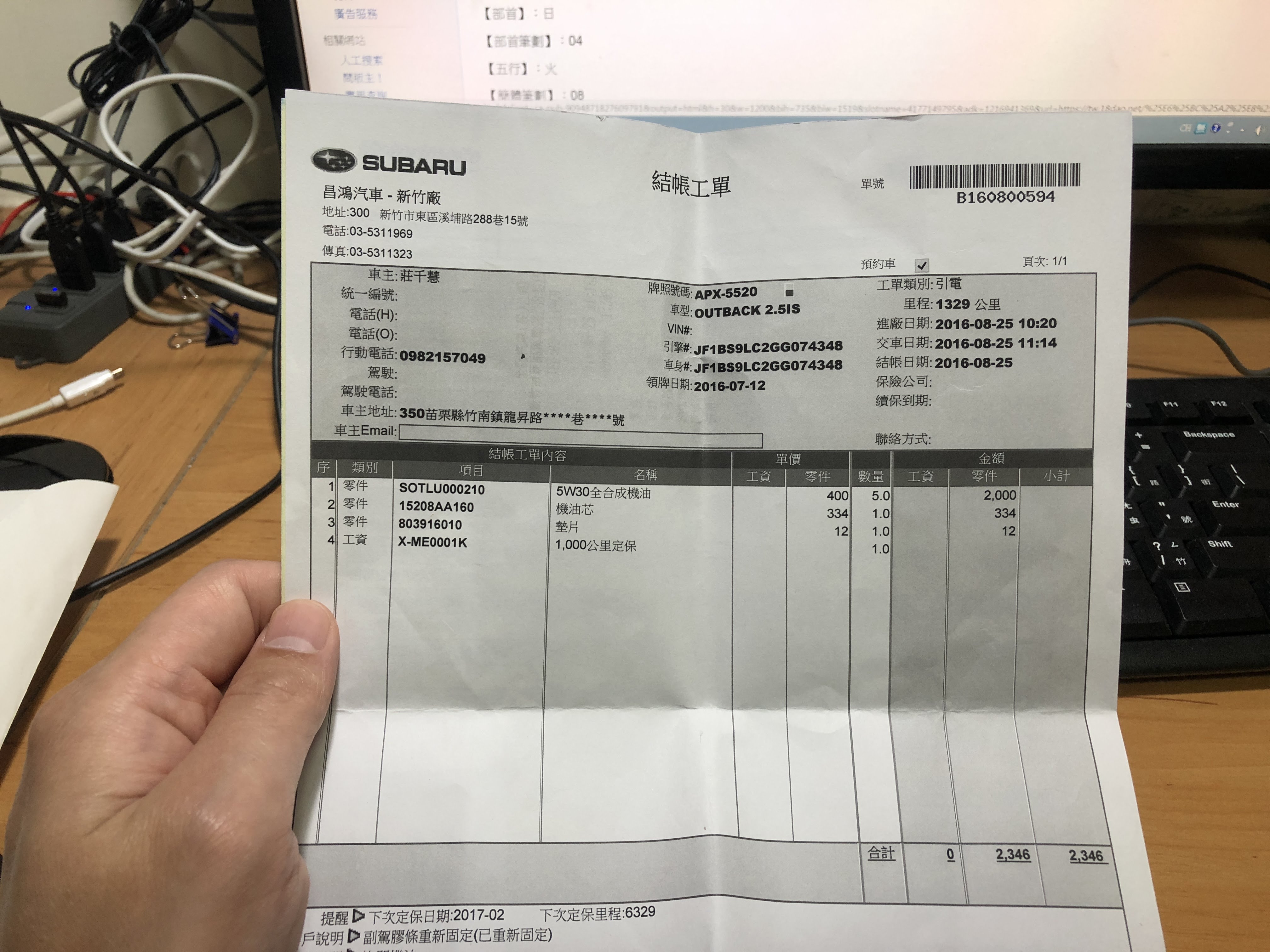 2018/4/20 進發輪胎更換 1. 煞車油 2. 調胎(交叉調) 1200元